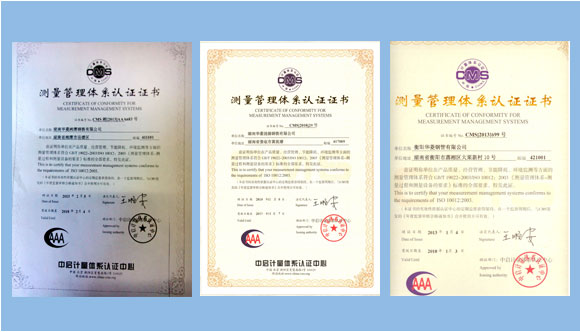 華菱湘鋼、華菱漣鋼、華菱衡鋼測(cè)量管理體系認(rèn)證證書