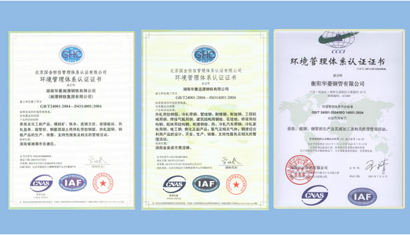 華菱湘鋼、華菱漣鋼、華菱衡鋼環(huán)境管理體系認(rèn)證證書
