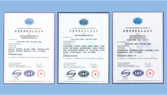 華菱湘鋼、華菱漣鋼、華菱衡鋼質(zhì)量管理體系認(rèn)證證書