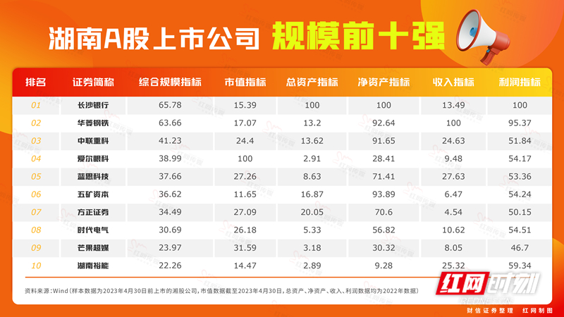 榜單從規(guī)模實(shí)力、發(fā)展?jié)摿?、?chuàng)新能力、經(jīng)營(yíng)效益、社會(huì)責(zé)任等五大指標(biāo),多維度反映湖南上市公司的軟硬競(jìng)爭(zhēng)實(shí)力。