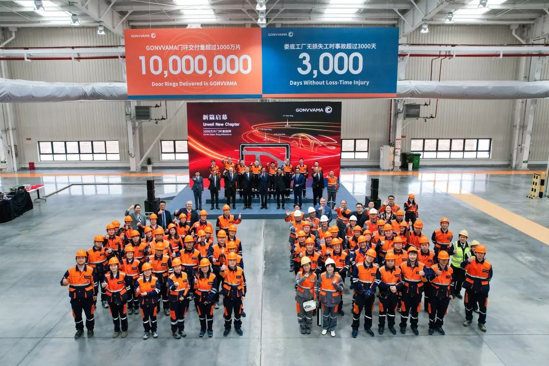 在啟幕儀式上,華安鋼寶利董事長成沛祥先生代表公司向來訪貴賓致歡迎詞。隨后,在CTO 尹慶冬的主持下,全體嘉賓共同觀看了《1000萬片門環(huán)之路》短片,回顧了其達成這一里程碑的奮進歷程。米塔爾先生、李建宇先生與華安鋼寶利CEO馬立宇、副CEO鄭陳新共同在象征新起點的門環(huán)上簽名留念。