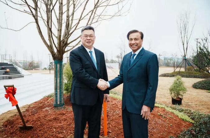 圖為2025年2月19日,湖南鋼鐵集團(tuán)黨委書記、董事長李建宇(左)在VAMA與安賽樂米塔爾集團(tuán)執(zhí)行董事長拉克什米·米塔爾,種下象征雙方股東攜手并進(jìn)、共育未來的“同心樹”。(VAMA供圖)