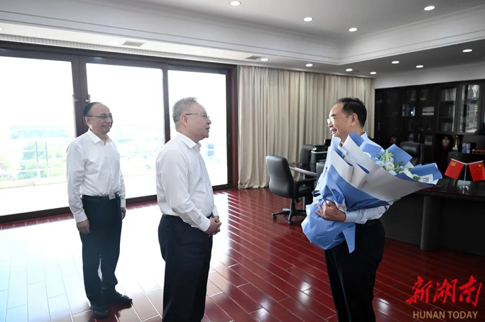 (9月23日,沈曉明走訪慰問(wèn)“國(guó)家卓越工程師”獲得者易小剛。)