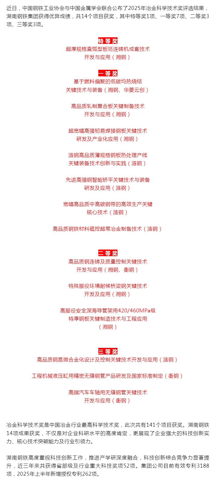 湖南鋼鐵新動(dòng)能丨14項(xiàng)獲獎(jiǎng)成果閃耀2025年冶金科學(xué)技術(shù)獎(jiǎng)榜單