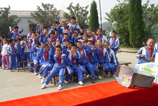 “你們喜歡這樣的活動嗎?”當(dāng)志愿者問坪塘小學(xué)的學(xué)生時,回答都是肯定的。接著問為什么感到快樂時,他們共同的第一答案是“今天不用上課”。接下來才是“我交了一個朋友”或者“我得到了一份禮物”。有一個小男孩說他很開心,看到了大企業(yè)的總經(jīng)理,他很想將來長大了可以當(dāng)總經(jīng)理。
