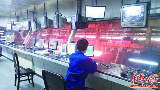 華菱集團(tuán)衡鋼工作人員正在操控臺(tái)實(shí)時(shí)監(jiān)控生產(chǎn)情況。