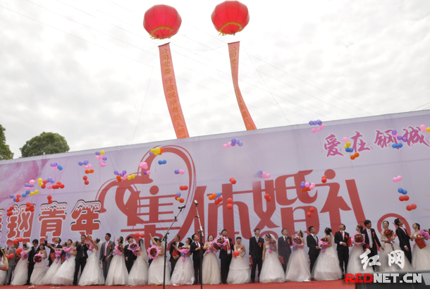 5月12日,一場(chǎng)溫馨而又浪漫的“綠色婚禮”在湖南省婁底市青山文化廣場(chǎng)隆重舉行。華菱漣鋼的31對(duì)新人攜手邁入婚姻殿堂,完成了人生角色的轉(zhuǎn)變。